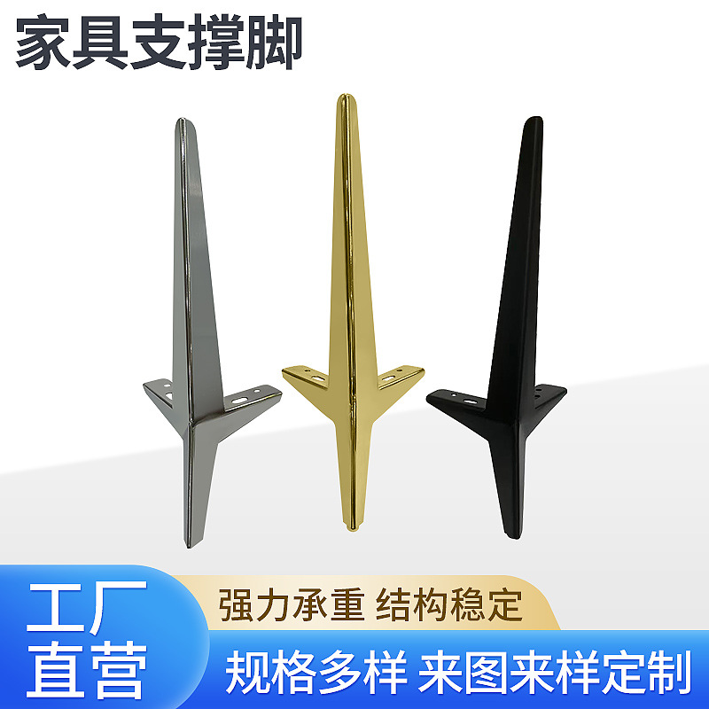 轻奢家具沙发脚三叉脚床头柜脚卫浴柜防滑支撑脚茶几金属支架脚