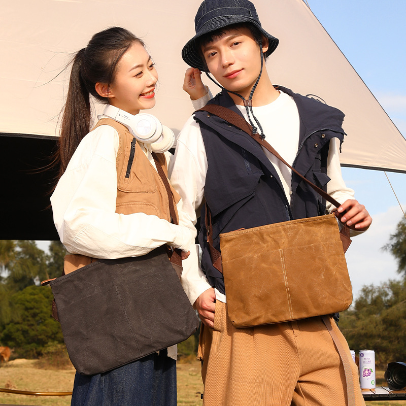工装油蜡帆布包斜挎包防水单肩包男女户外出行潮流邮差包文艺