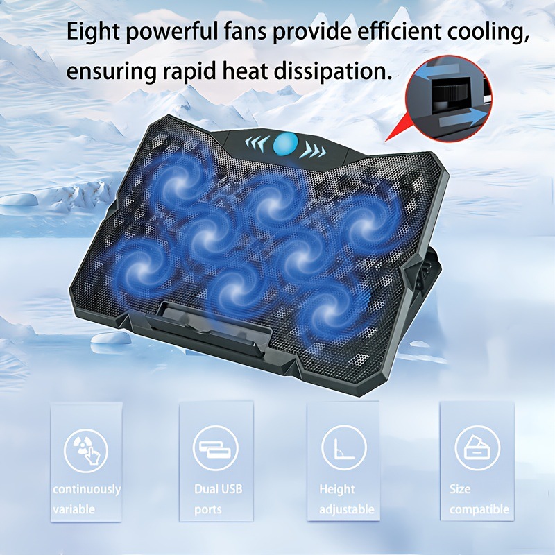 笔记本散热器 带防滑垫LED闪烁灯8个低噪音风扇适用12-19英寸电脑