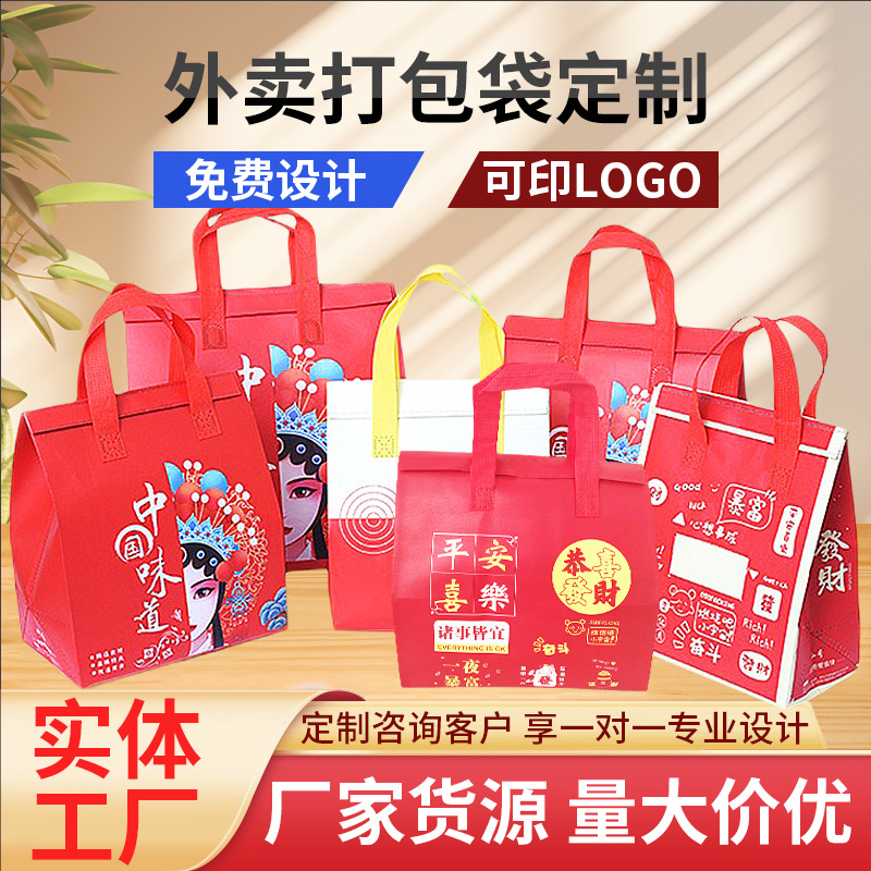 批发无纺布保温袋快餐外卖打包袋 无纺布手提袋餐饮覆膜外卖袋