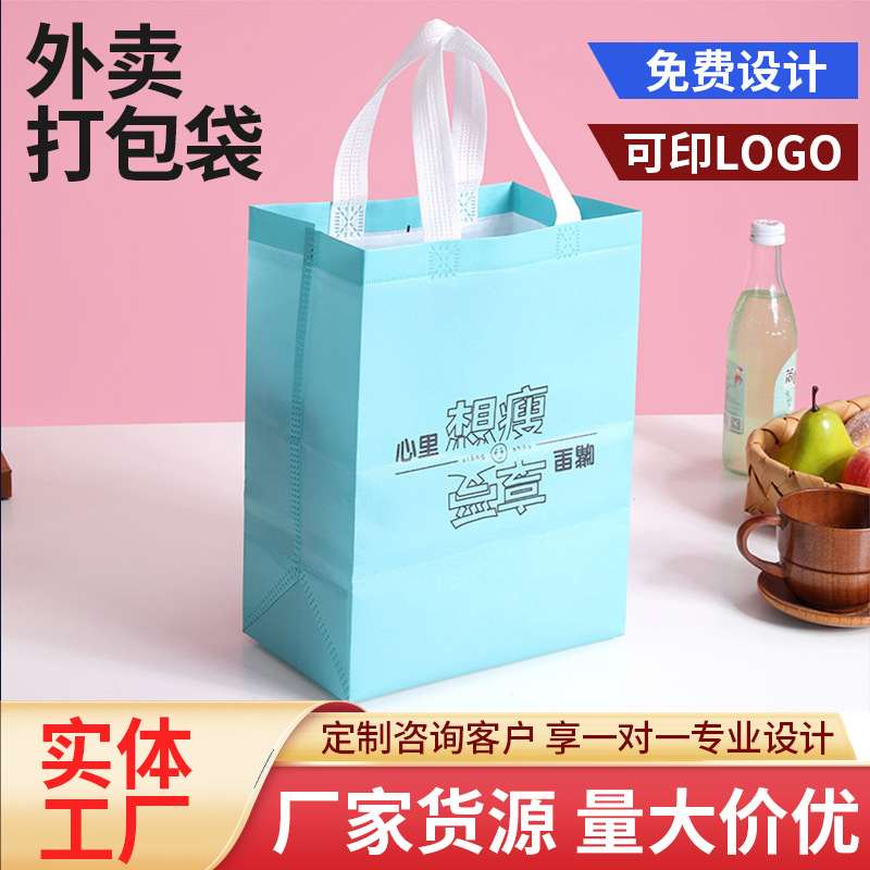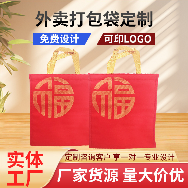 外卖打包袋 无纺布手提袋 防水环保餐饮外卖手提包装袋批发