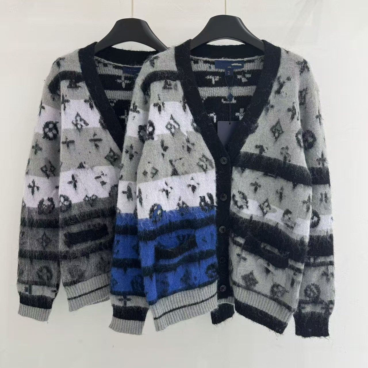 深圳南油货~顶~级版本 L家 男女同款撞色图案提花刺绣针织开衫外