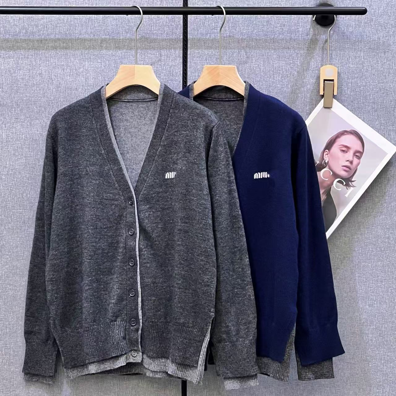 南油高定MM家25年秋冬新款休闲简约宽松撞色假两件V领针织开衫