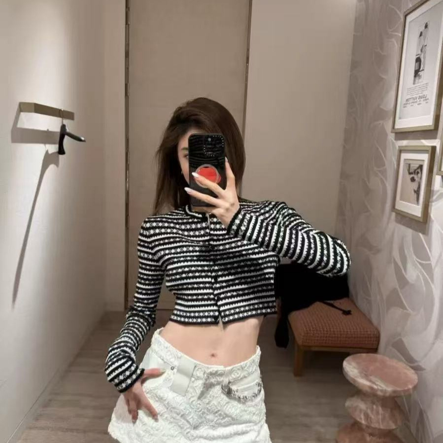 新款上市驴家秋冬设计感辣妹短款修身露脐显瘦长袖针织开衫上衣女