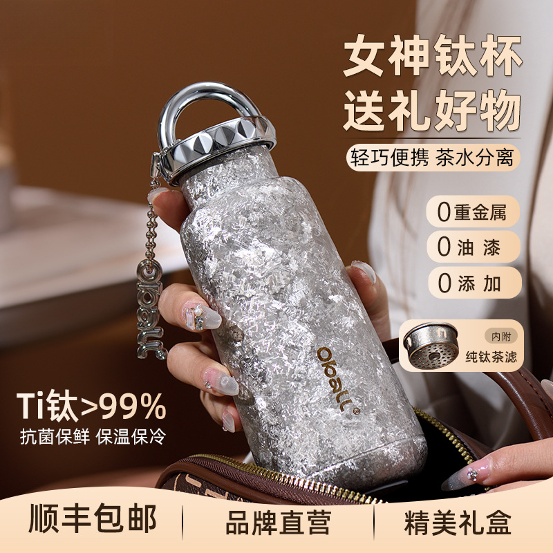 oball钛杯纯钛保温杯女士高颜值5新女生日中秋节礼物水杯子