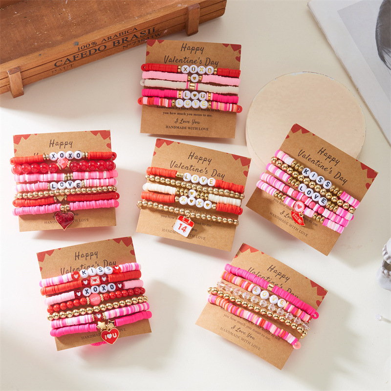 跨境热销情人节手链套装百搭时尚粉色字母Love串珠爱心款软陶手串
