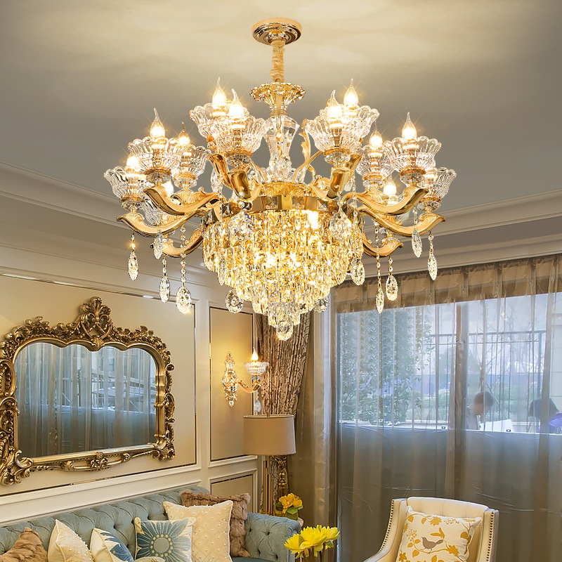 轻奢水晶吊灯客厅灯大气欧式别墅大厅大灯新款锌合金高档餐厅灯具