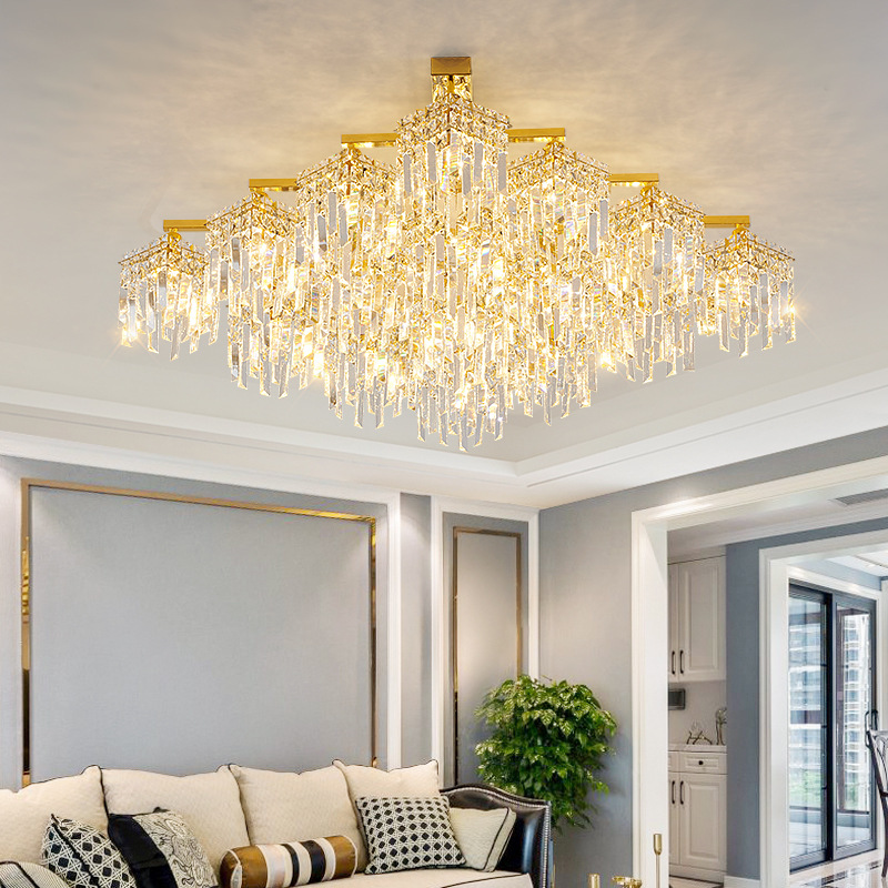 酒店现代简约客厅大吊灯金色复式楼中楼餐厅欧式水晶中山灯具新款
