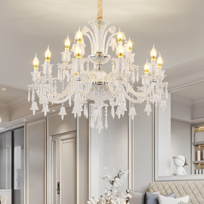 法式奶油风别墅复式挑空客厅吊灯现代铭色蜡烛巴卡拉奢华水晶吊灯