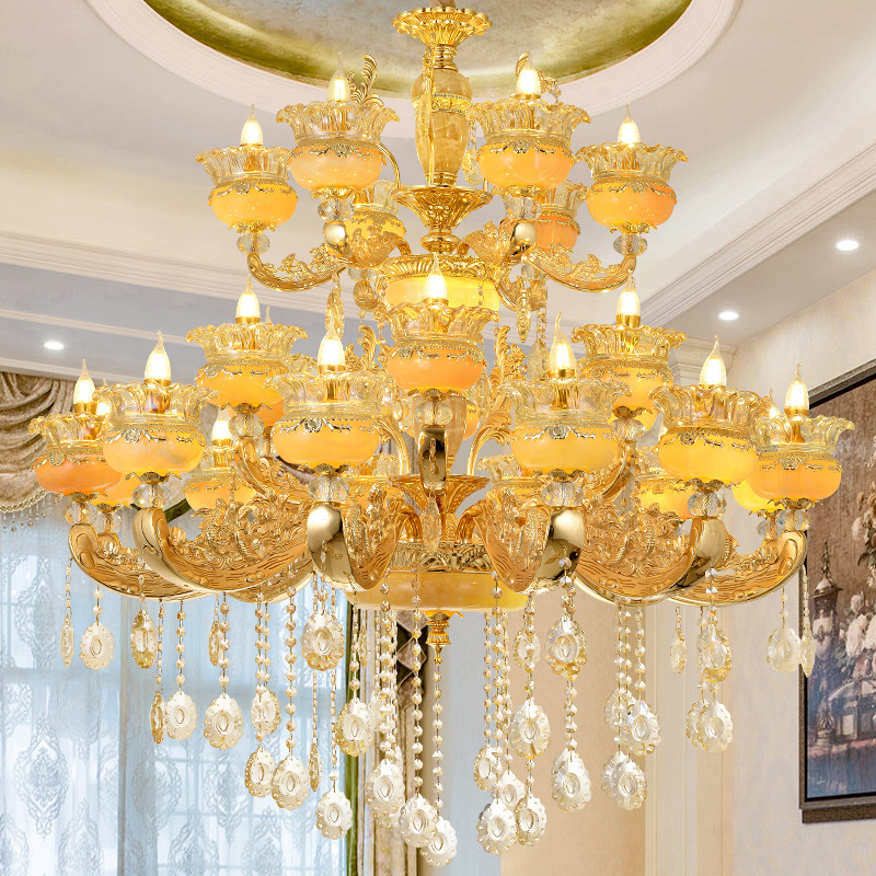 欧式别墅玉石吊灯客厅灯复式楼loft灯大气奢华中空楼梯水晶长吊灯