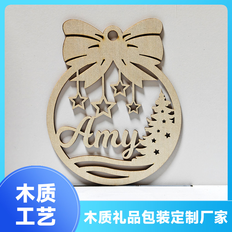 木质万圣节圣诞节镂空挂件小饰品圣诞树圆形挂件家居装饰品