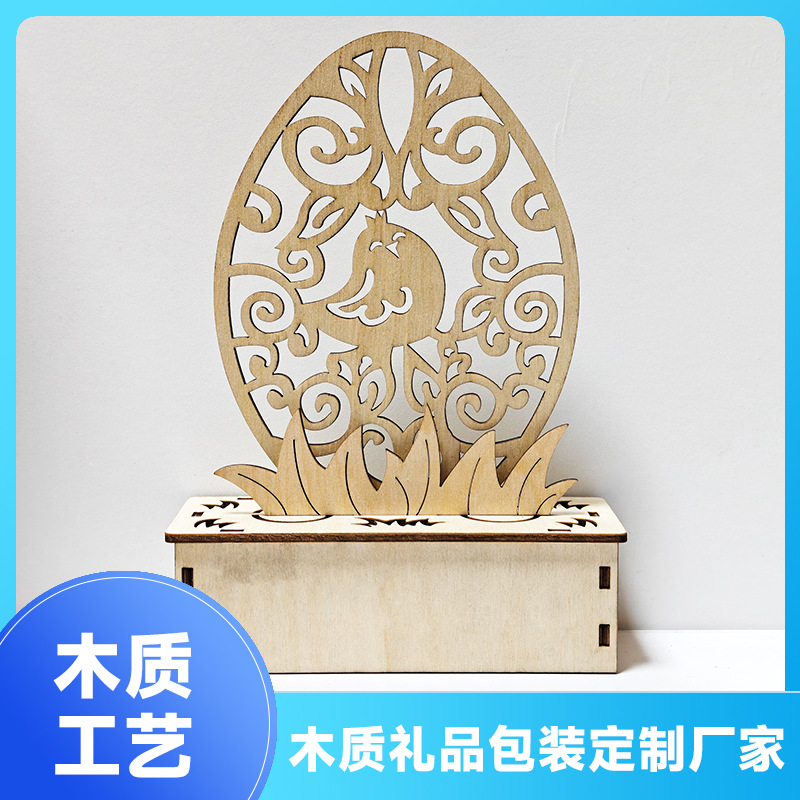 新款木质DIY插件复活节蛋花蝴蝶兔子木制插件happyEaster装饰礼品