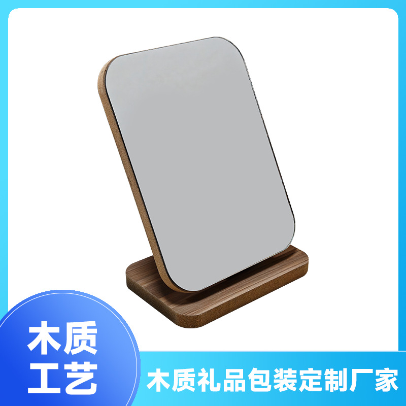 简约木质化妆镜旋转桌面化妆镜子台式学生宿舍折叠梳妆镜便携