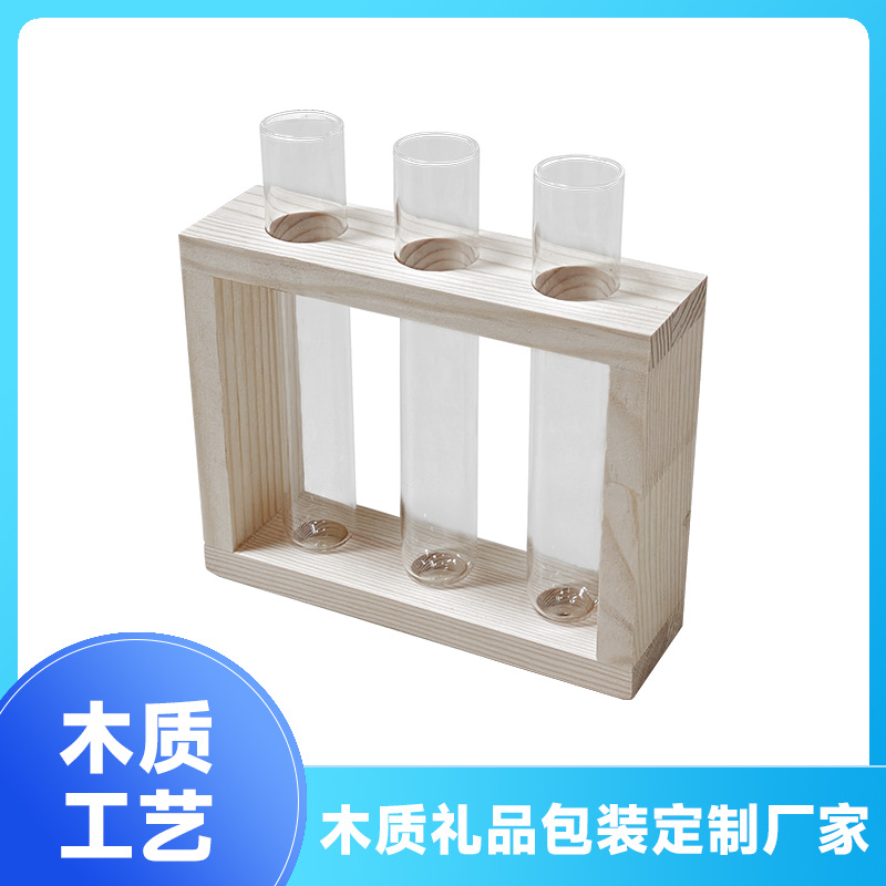 创意木架水培容器家居桌面装饰品试管玻璃花瓶摆件