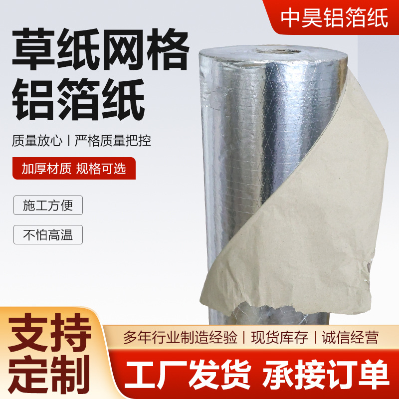 草纸网格铝箔纸阻燃铝箔玻璃纤维布铝箔布橡塑板自粘工业铝箔纸