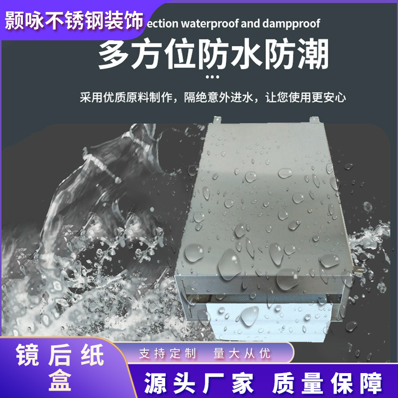 镜后纸巾盒酒店卫生间不锈钢304大抽纸盒方形纸巾架厂家批发