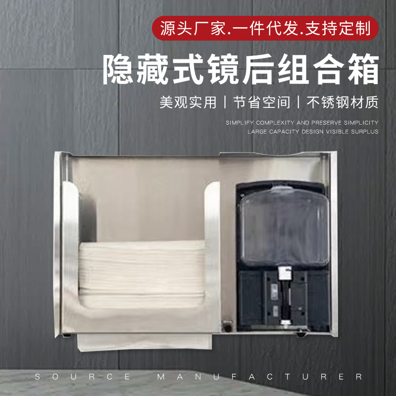 304不锈钢隐藏式镜后组合箱给皂器抽纸盒高档便捷二合一工厂批发