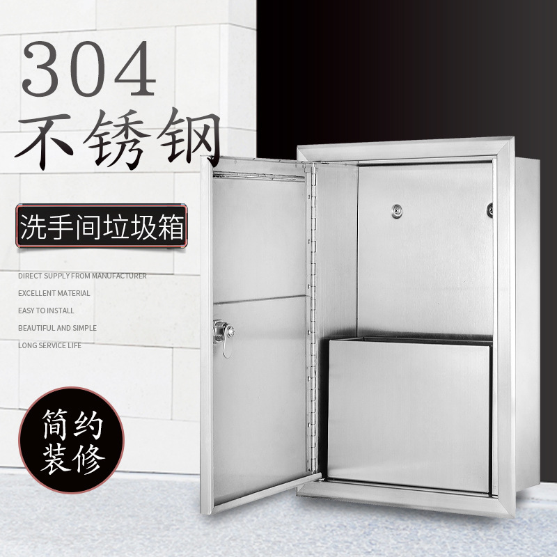 嵌入式垃圾桶304不锈钢浴室卫生间埋入式高档酒店专用垃圾桶批发