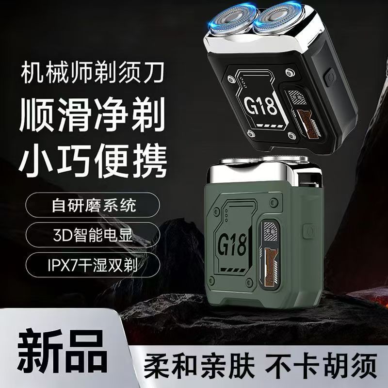 G18机甲风便携式剃须刀充电式刮胡刀旅行车载多功能液显胡须刀