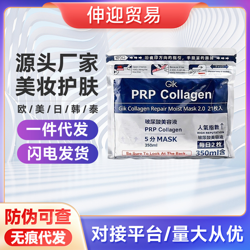 GIK胶原面膜补水保湿熬夜修护胶原蛋白免洗积雪草面膜21片批发