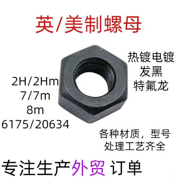 英美制发黑螺母重型化工配件高强度石油螺母电力锁紧工具六角螺母