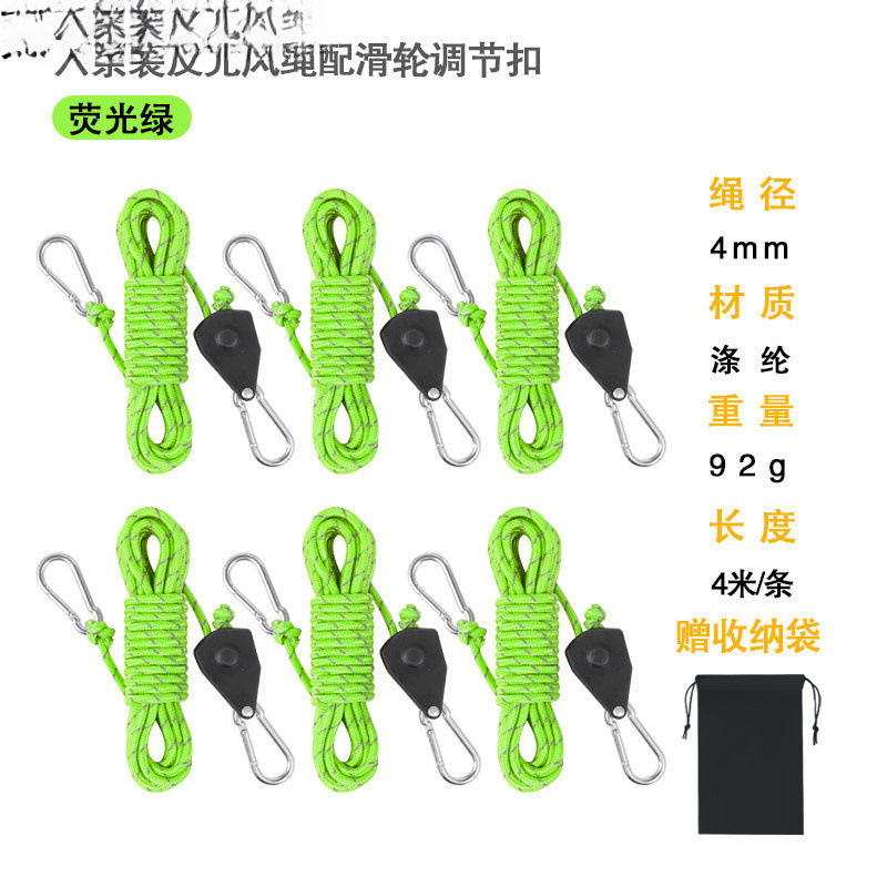户外天幕风绳帐篷绳拉紧器加粗防风绳滑轮扣调节器反光绳拉装