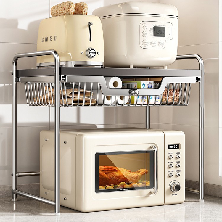 厨房微波炉置物架台面多功能支架烤箱架子电饭煲收纳架抽拉网篮