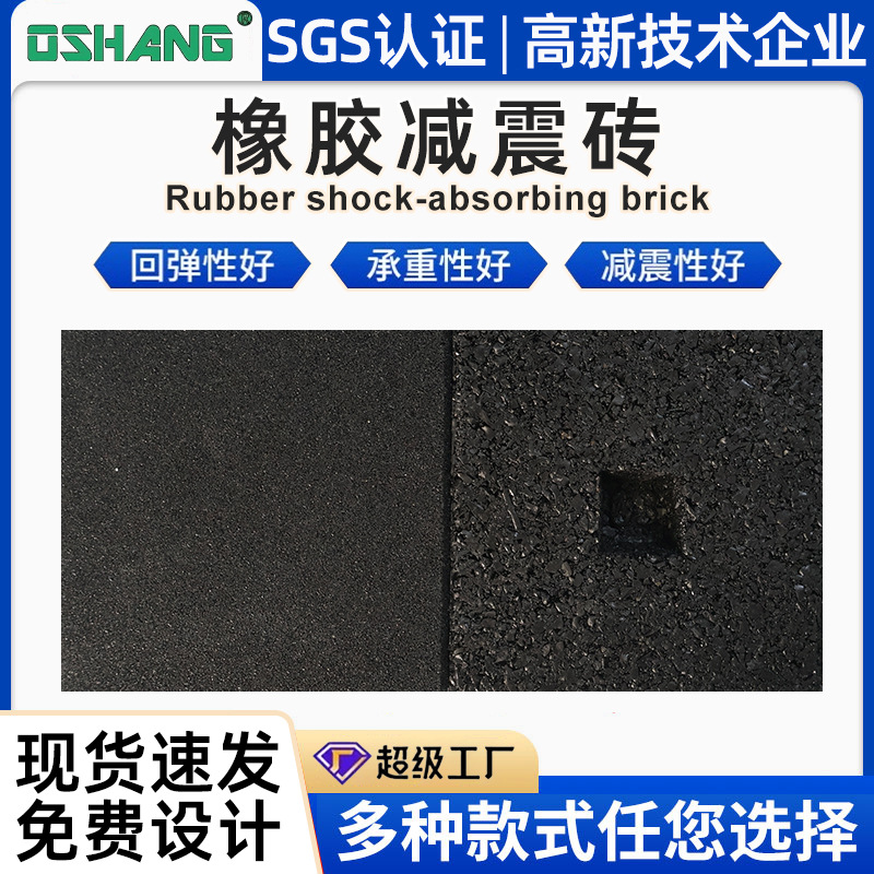 橡胶块减震砖运动地垫拼接专用地板隔音家用户外橡胶砖复合地砖