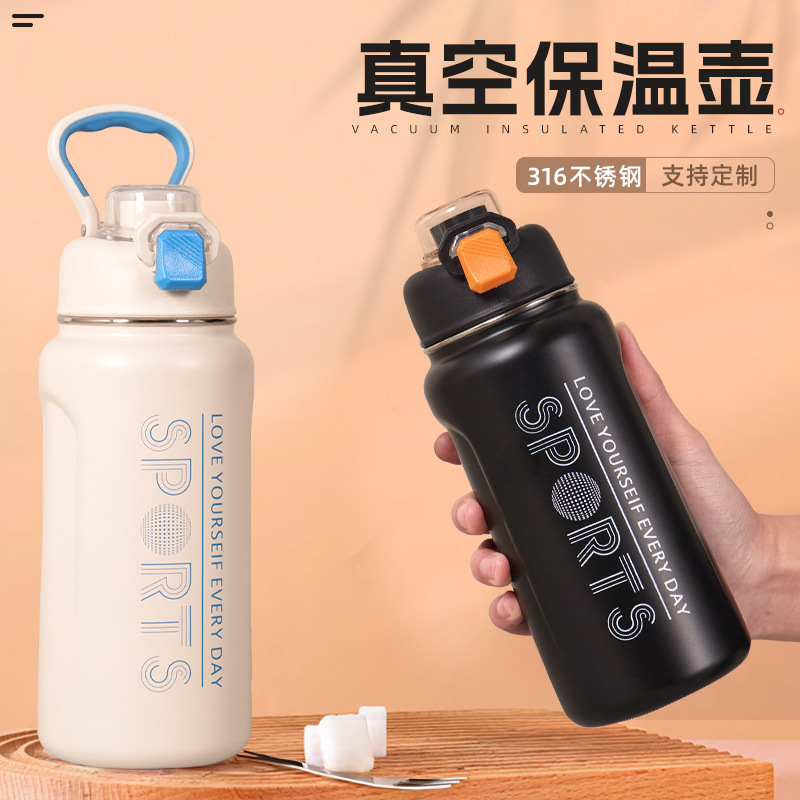 定制316不锈钢保温杯便携吸管弹跳水杯大容量户外手提运动水壶