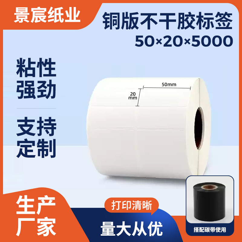 铜版纸空白不干胶标签纸50x20x5000双排横版空白贴纸二维码打印纸