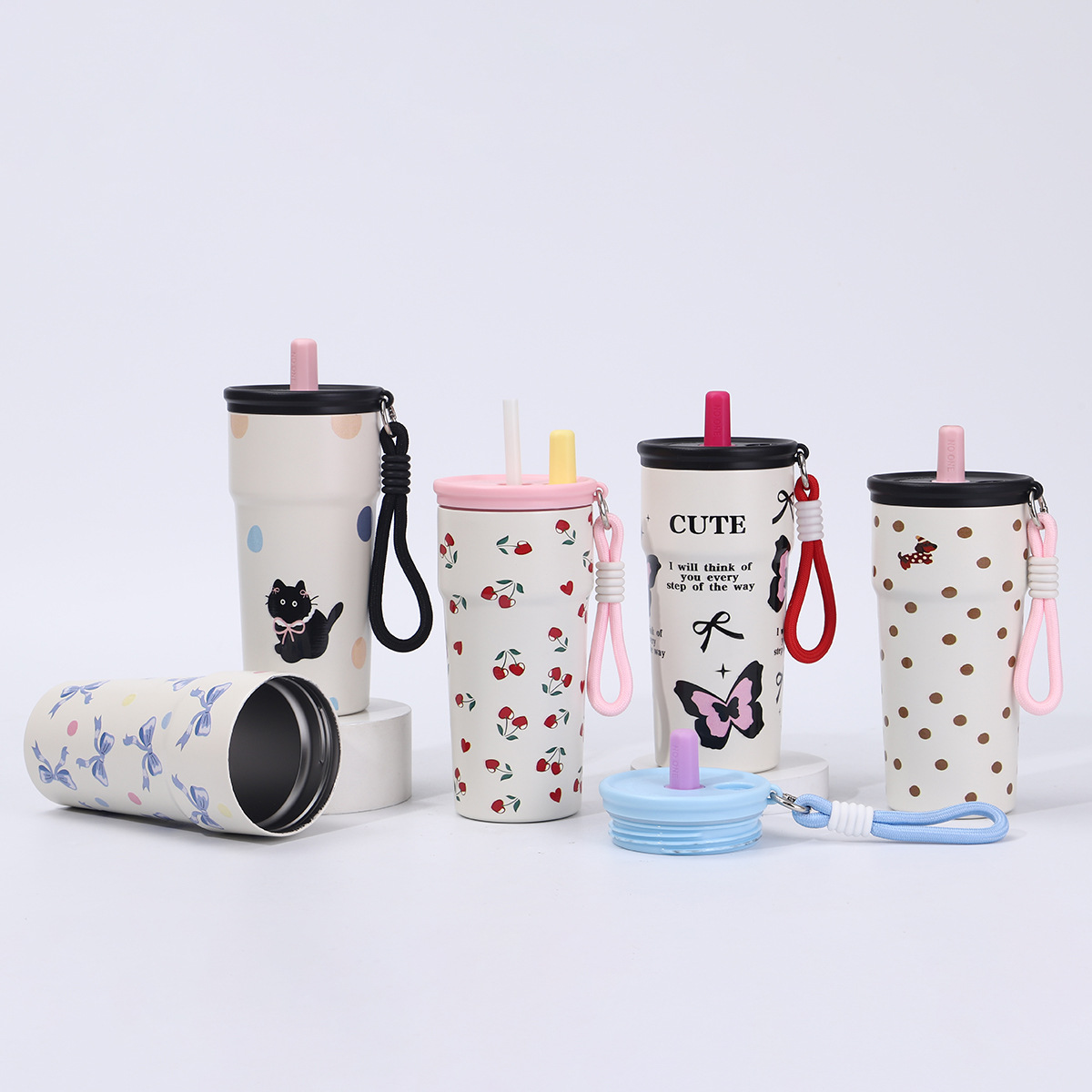 高颜值跨境新款304不锈钢保温杯提绳便携汽车杯高颜值冰霸吸管杯