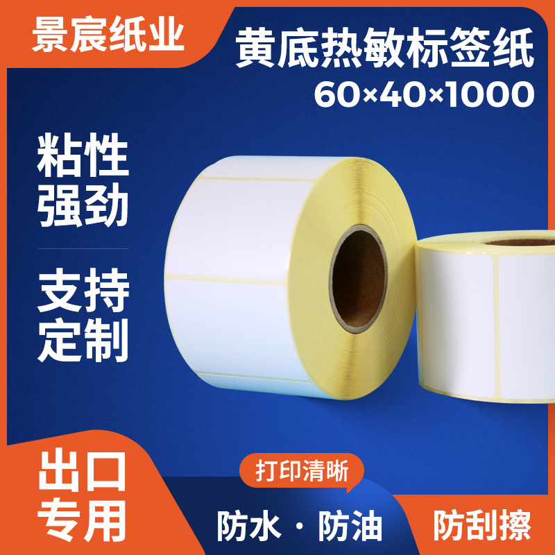 跨境专供黄底三防热敏标签打印纸60x40x1000物流快递不干胶打单纸