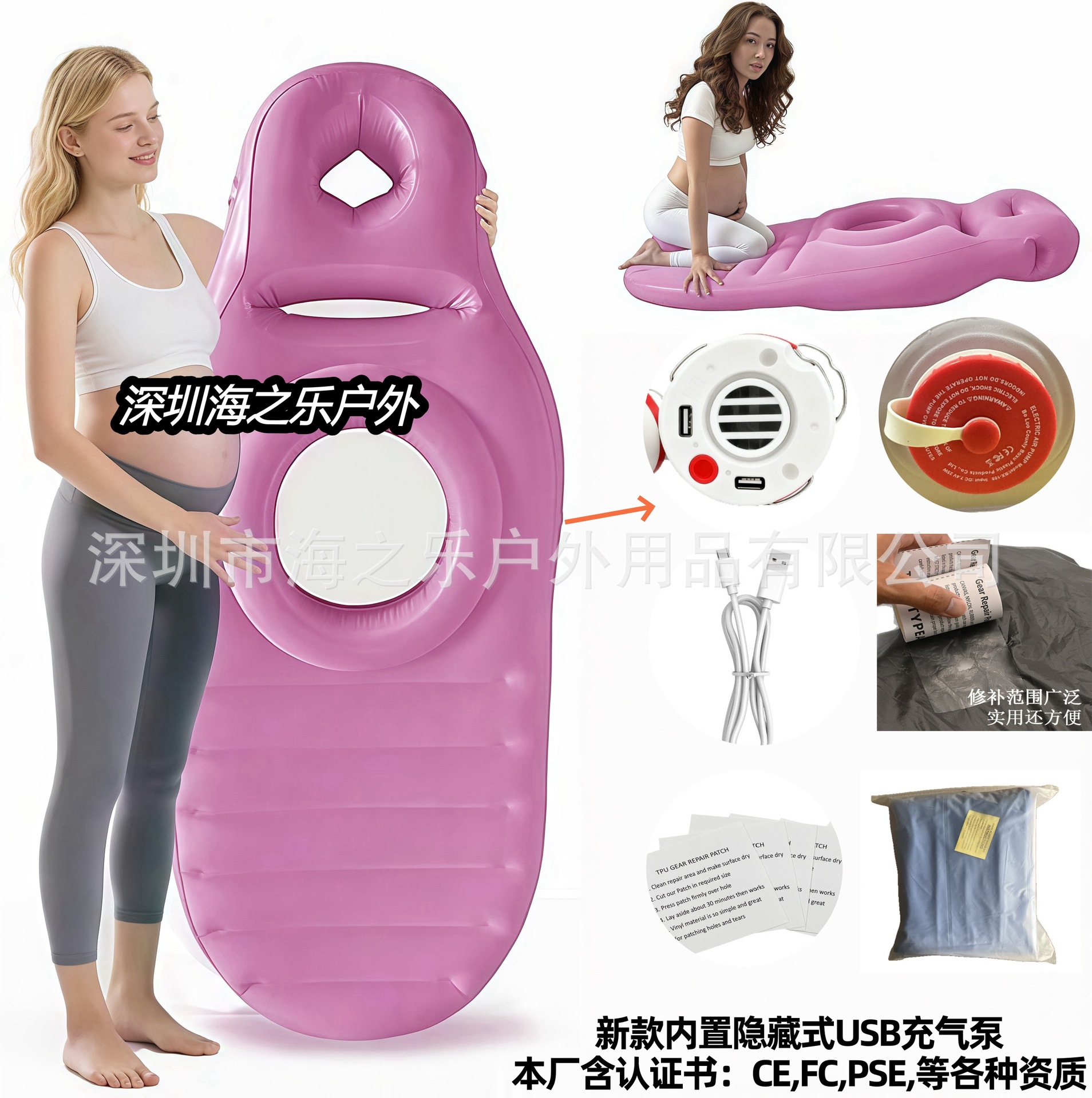 内置全自动充气孕妇床垫环保PVC植绒凹O型充气孕妇床趴垫便携式