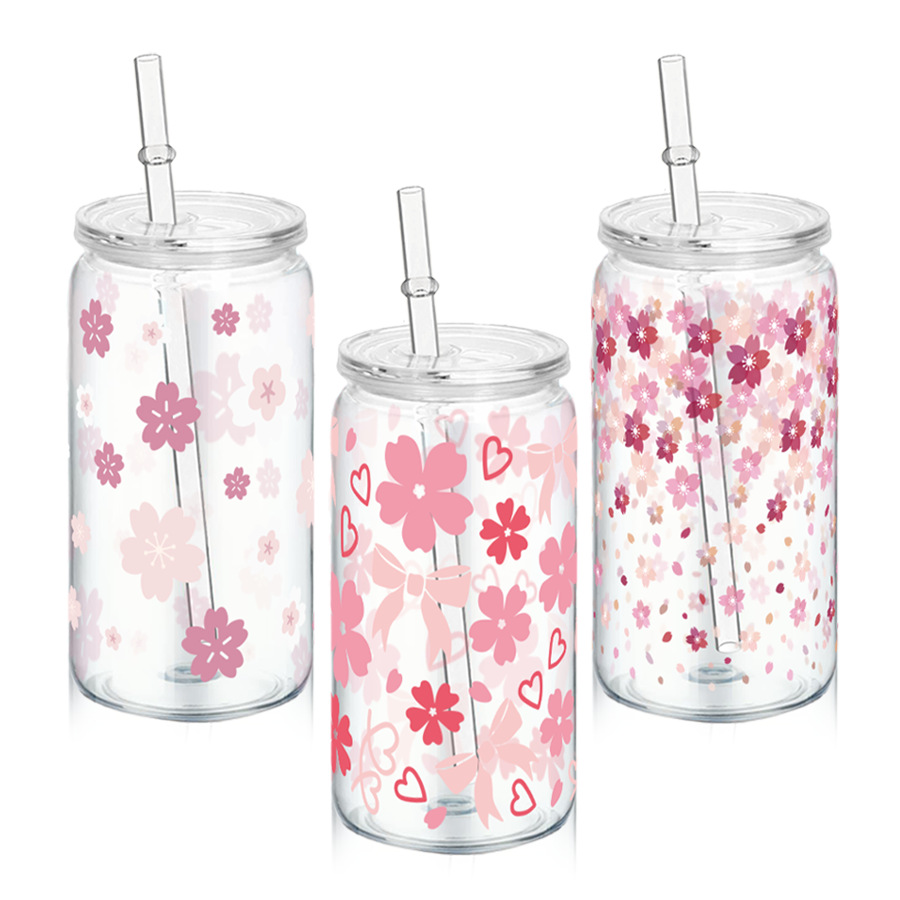 16oz小清新樱花设计塑料杯礼品冷饮杯梅森杯亚马逊跨境