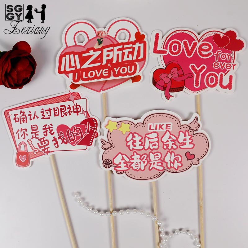 520loveyou卡片烘焙蛋糕装饰插件浪漫情人节花束插卡鲜花包装插牌