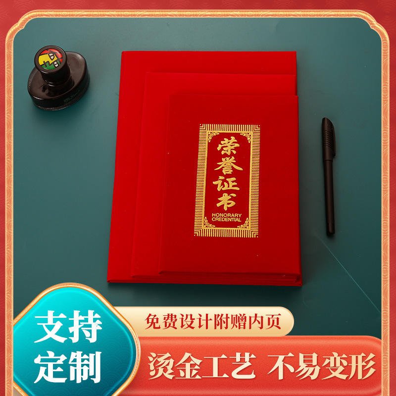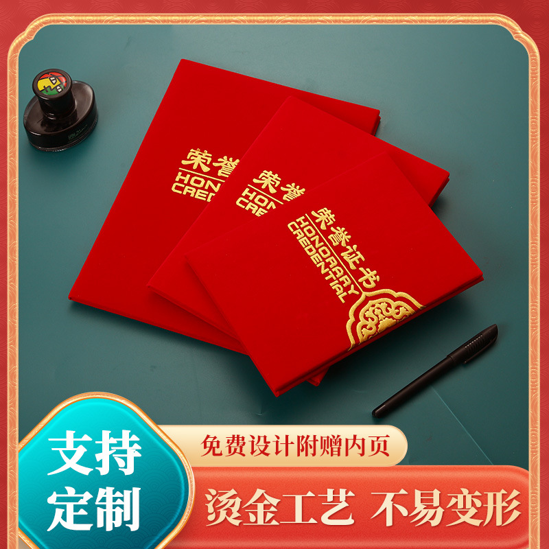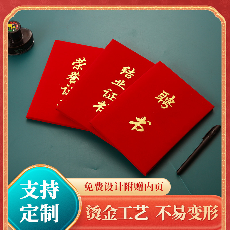 烫金绒面荣誉证书A4浮雕金字外壳聘书获奖奖状结业证书内页批发
