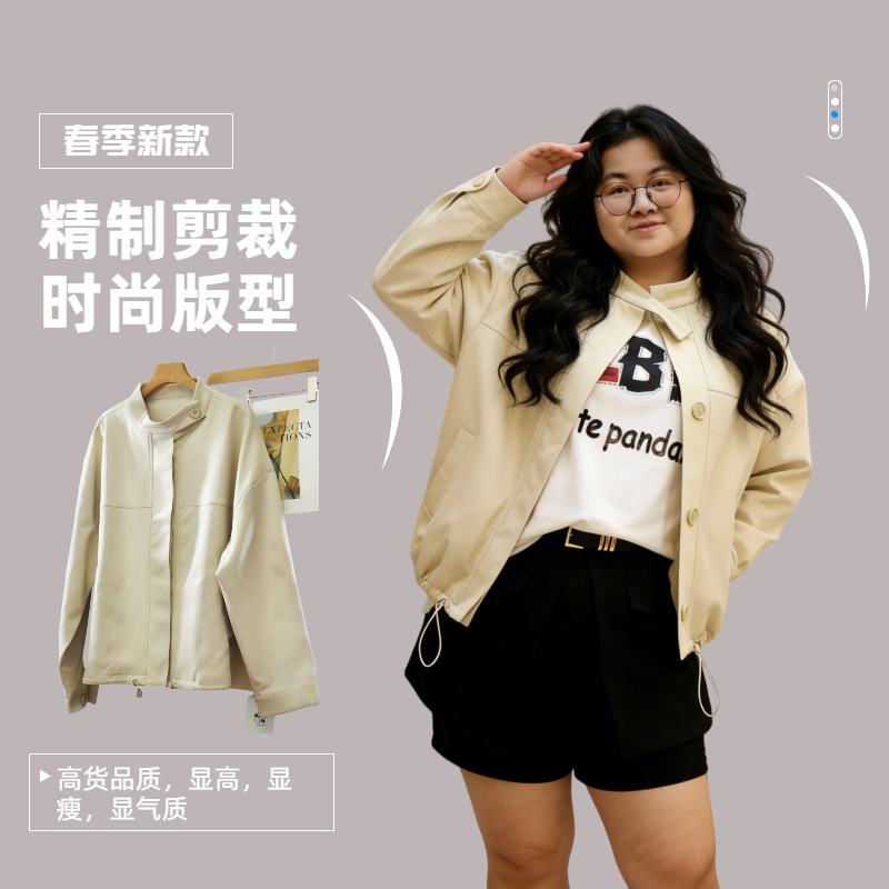 2026春季新款 大码女装时尚休闲百搭 显瘦立领设计感短款风衣外套