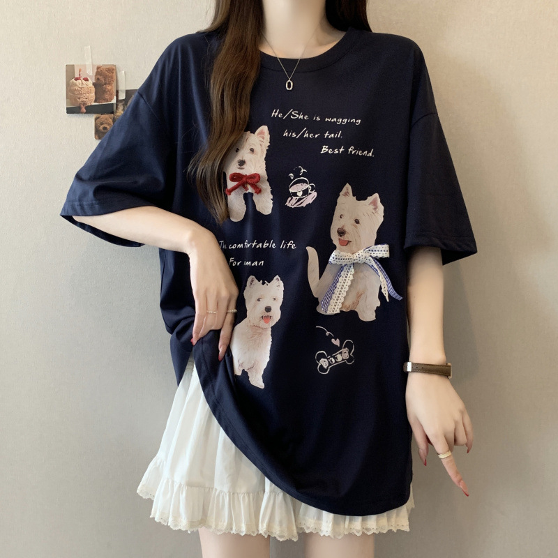 大码巨好看女装胖mm短袖T恤女2026新款夏款小狗印花上衣