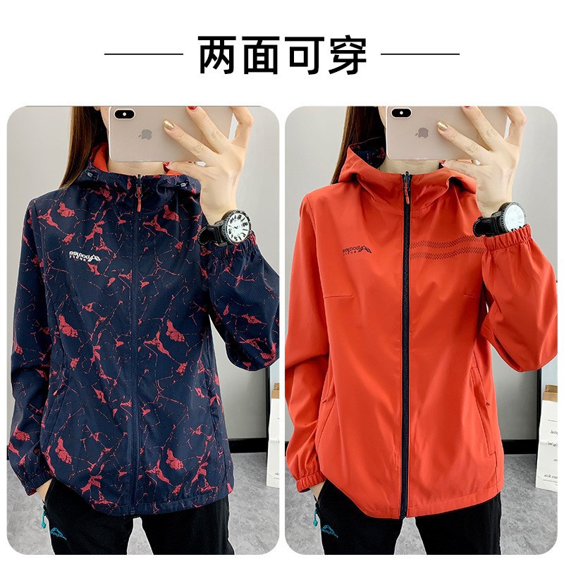 春秋新款两面穿冲锋衣女户外运动防风防水轻薄透气登山服长袖外套