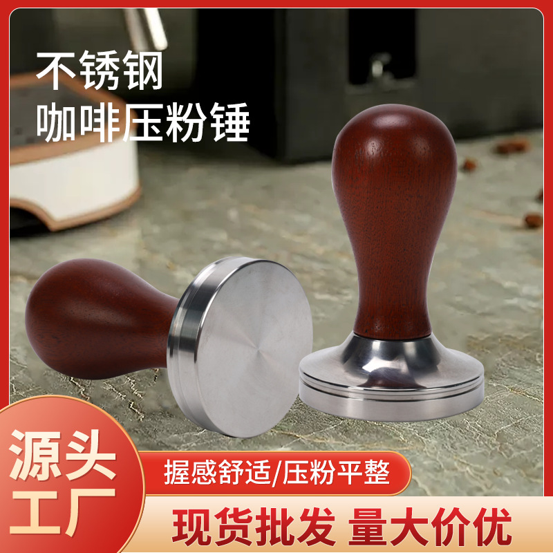 咖啡机 压粉器304不锈钢薄款压粉锤实心不锈钢加木柄压粉器