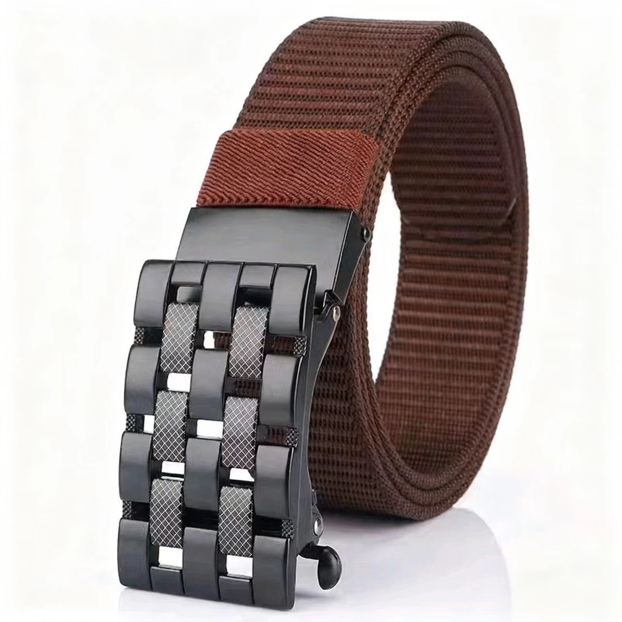 尼龙编织锌合金扣头源头腰带户外百搭无孔简约自动扣一键解扣