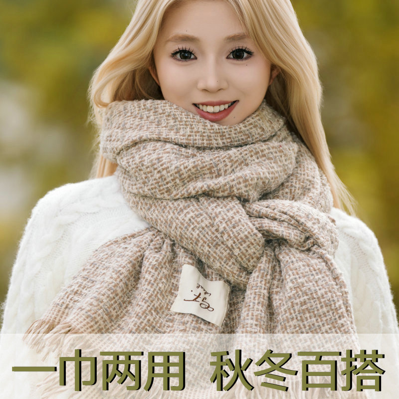 新款围巾秋冬季女韩版氛围感保暖围脖学生情侣小香风披肩一件代发