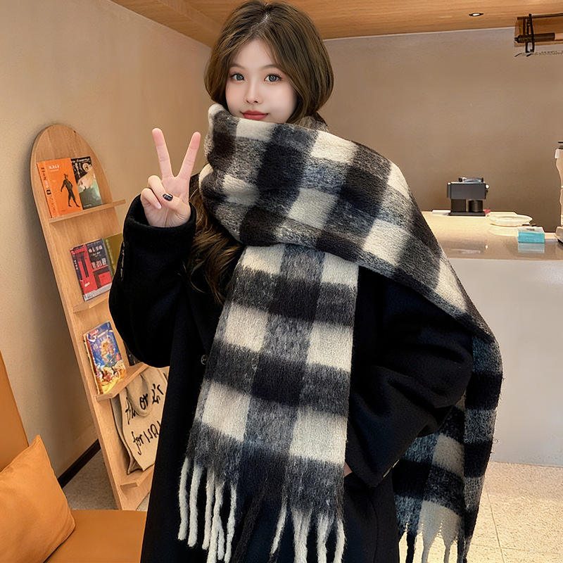 秋冬新款仿羊绒格子围巾女加厚保暖流苏配色马海毛虞书欣同款防寒