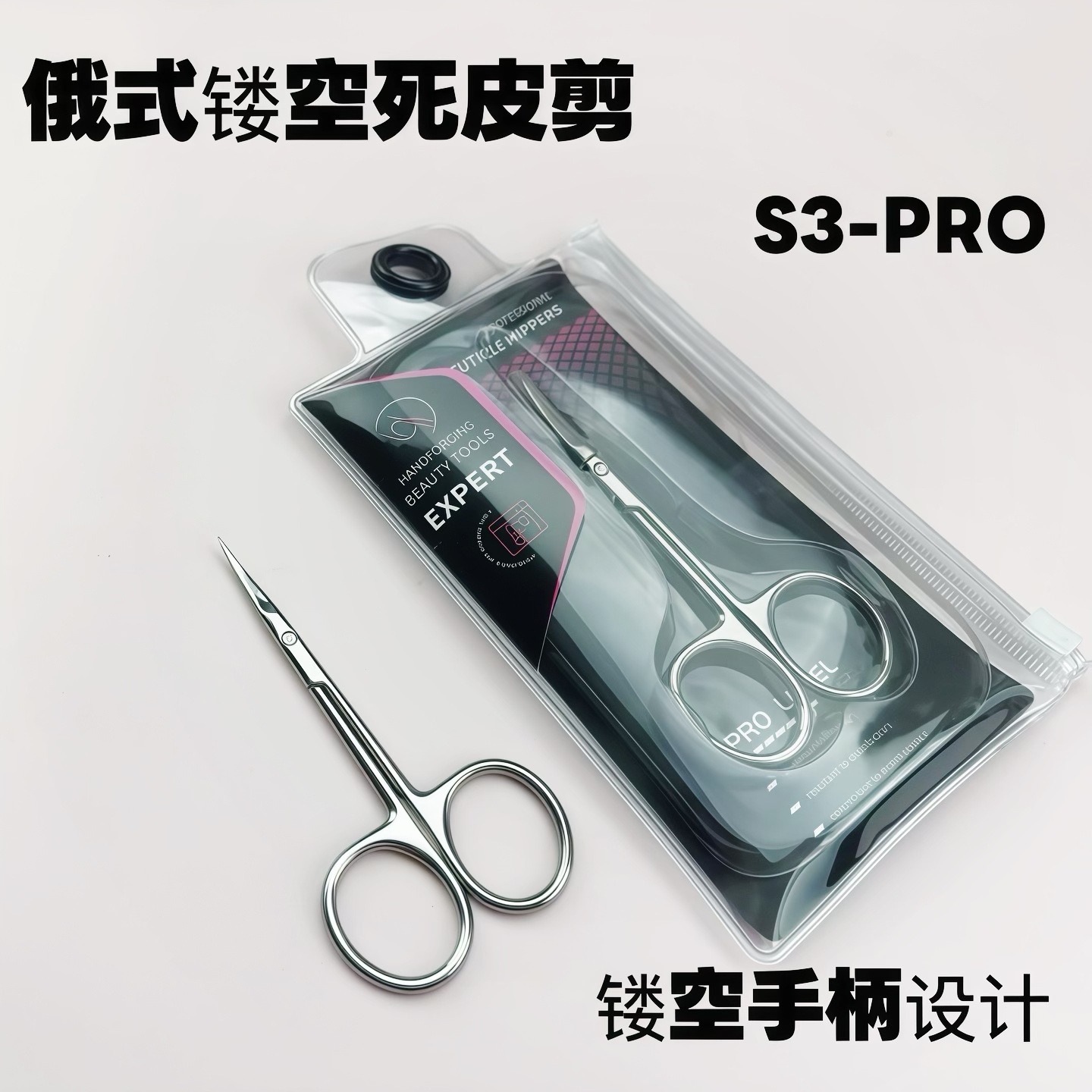 俄式S3-PRO镂空手柄死皮剪不锈钢专业美甲师工具易剪前置小弯剪