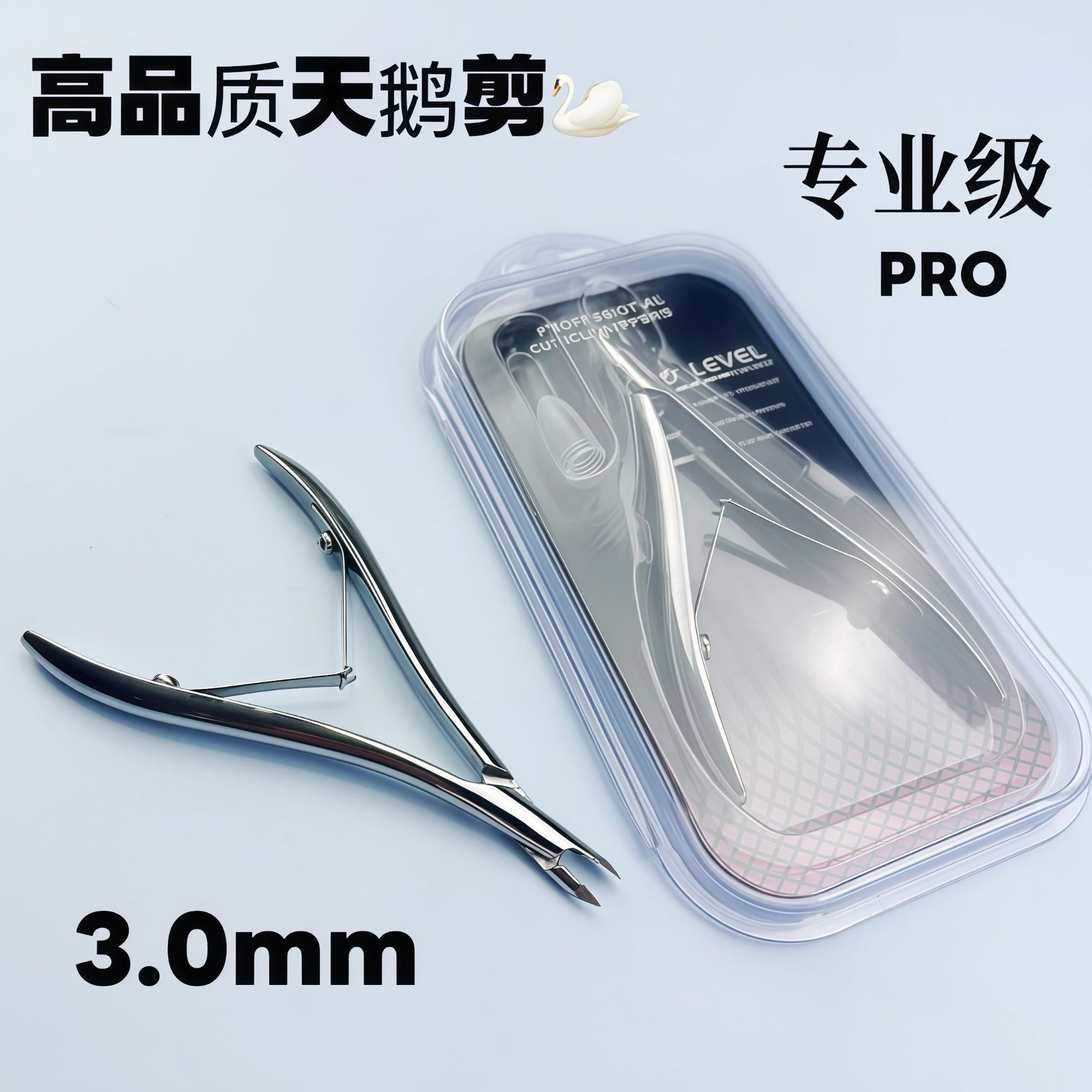 3.0MM小刀口天鹅剪PRO俄式不锈钢死皮剪美甲师工具专用级死皮钳套