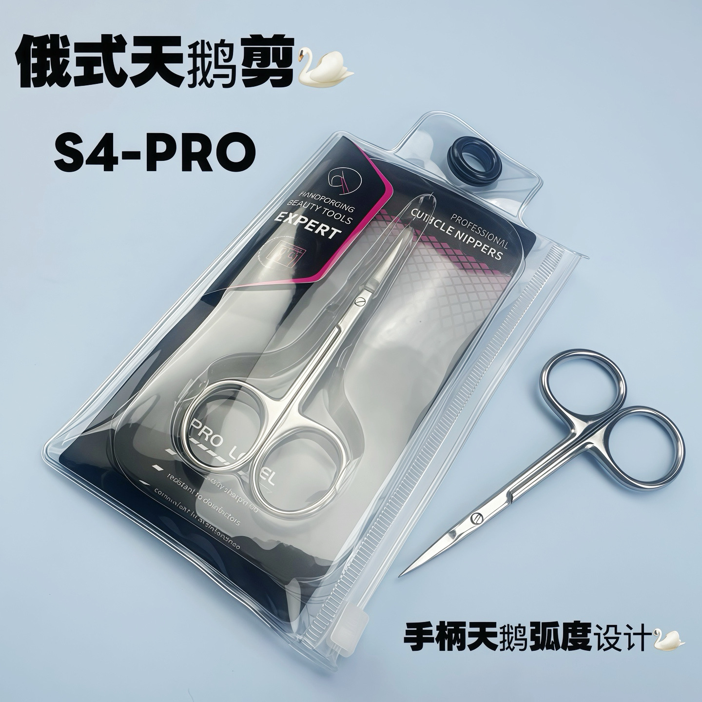 俄式天鹅手柄S4-PRO死皮剪乌克兰不锈钢易剪义修专业级前置小弯剪