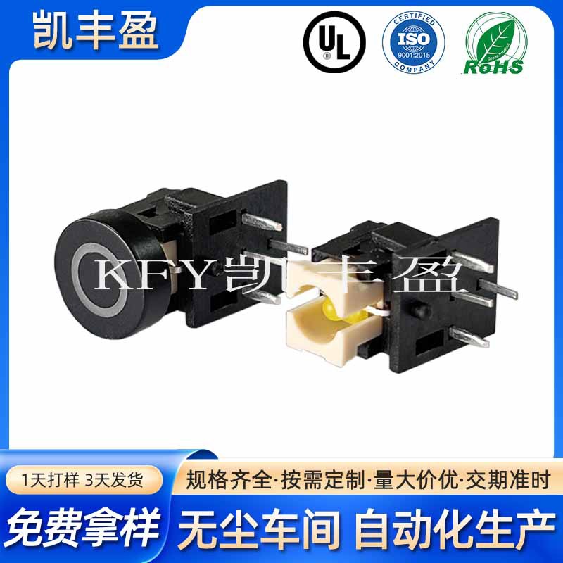 凯丰盈圆形12.5mm插件机箱电源开关 带灯轻触开关 带灯按键开关