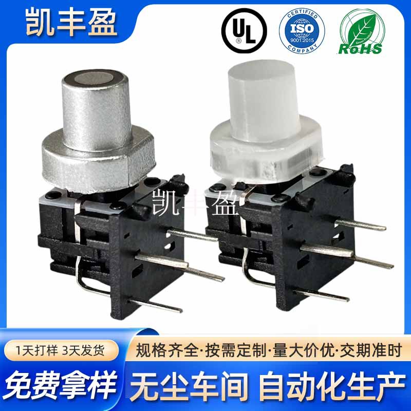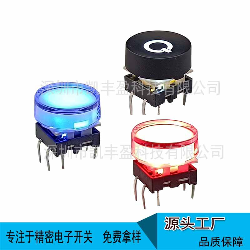 0.9mm长行程轻触开关定制圆形复位按键电源开关直插式引脚带灯开