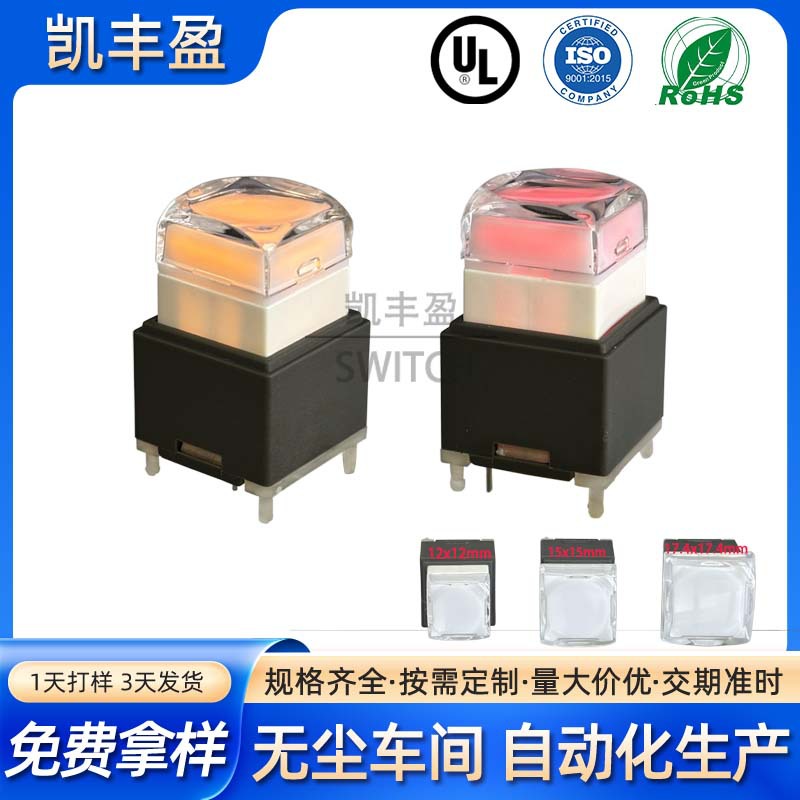 带灯轻触开关方形12X12水晶发光按钮 视频处理器按键开关定制丝印