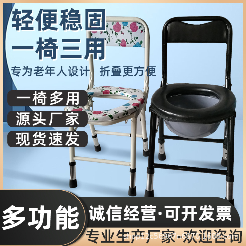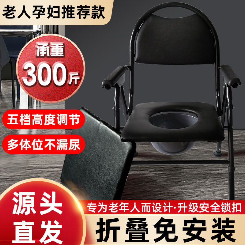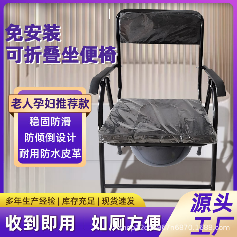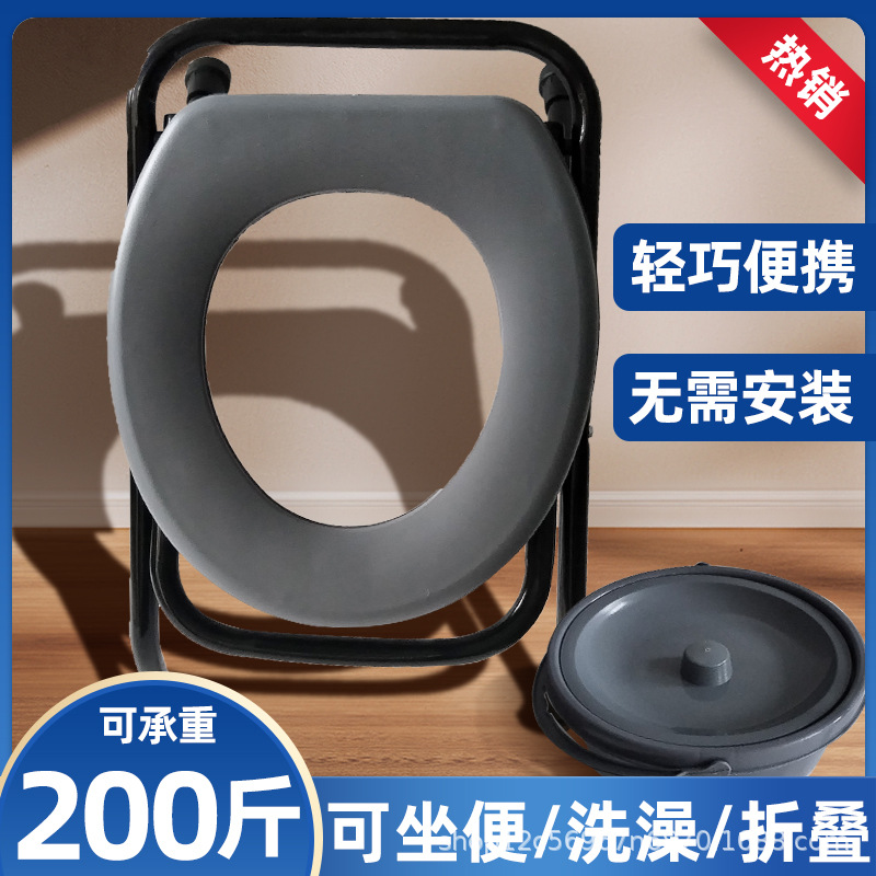 厂家可折叠坐便器老人坐便椅孕妇成人病人防滑带桶移动坐厕蹲便凳